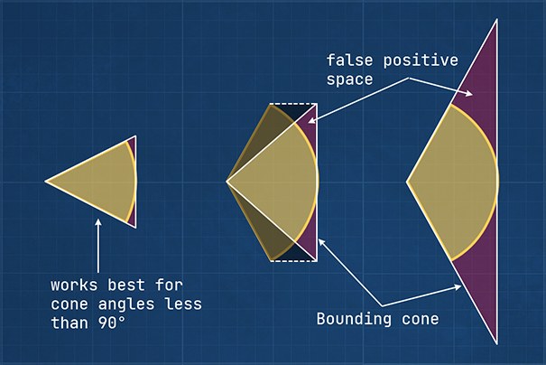 Figure 7: Using a cone as bounding volume for spotlights works best if spotlight cone angle is less than